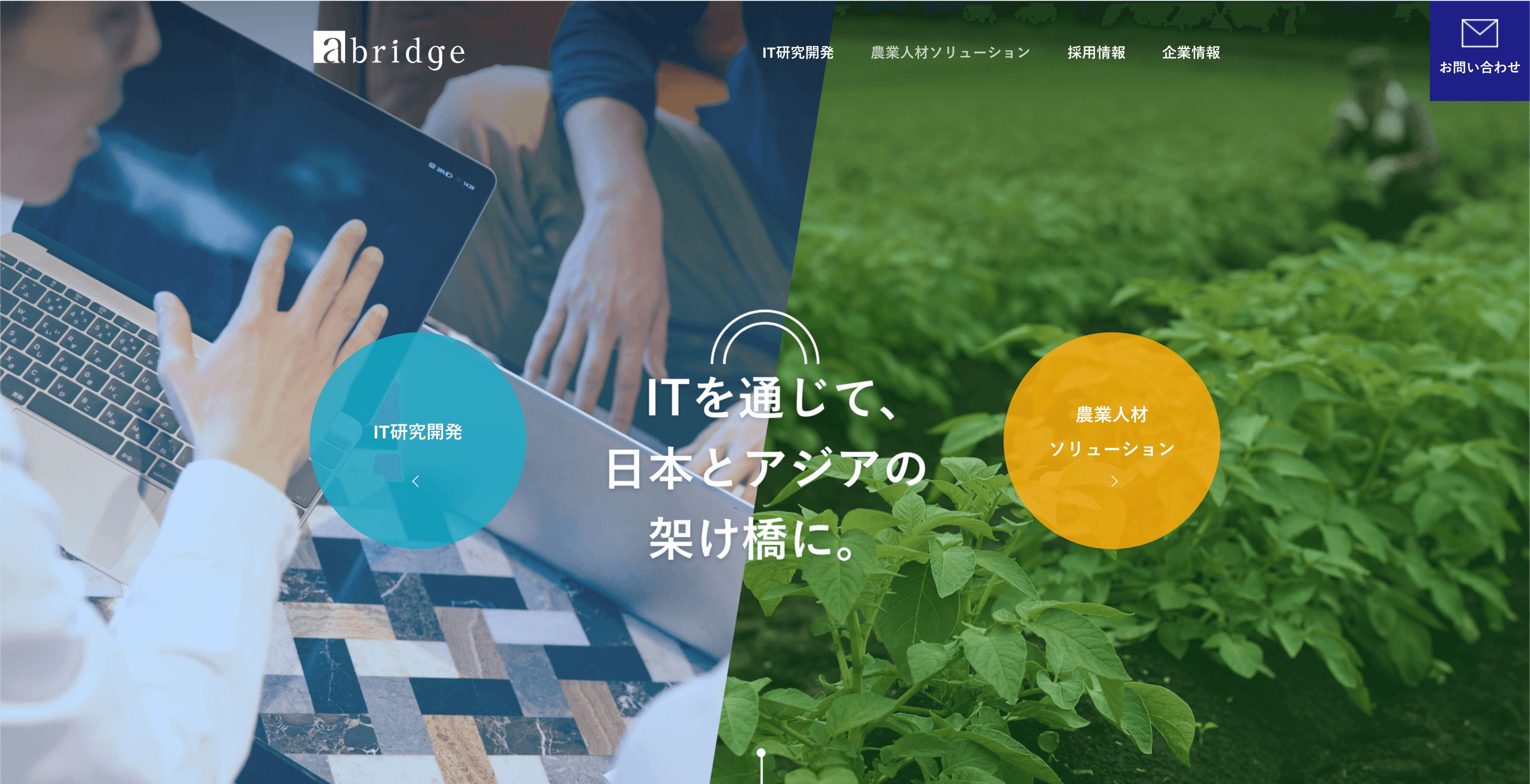 株式会社エイブリッジは、IT開発、オフショア開発、人材派遣、農業事業を展開する企業で、東京、大阪、沖縄、北海道、およびアジア各地に拠点を持っています。