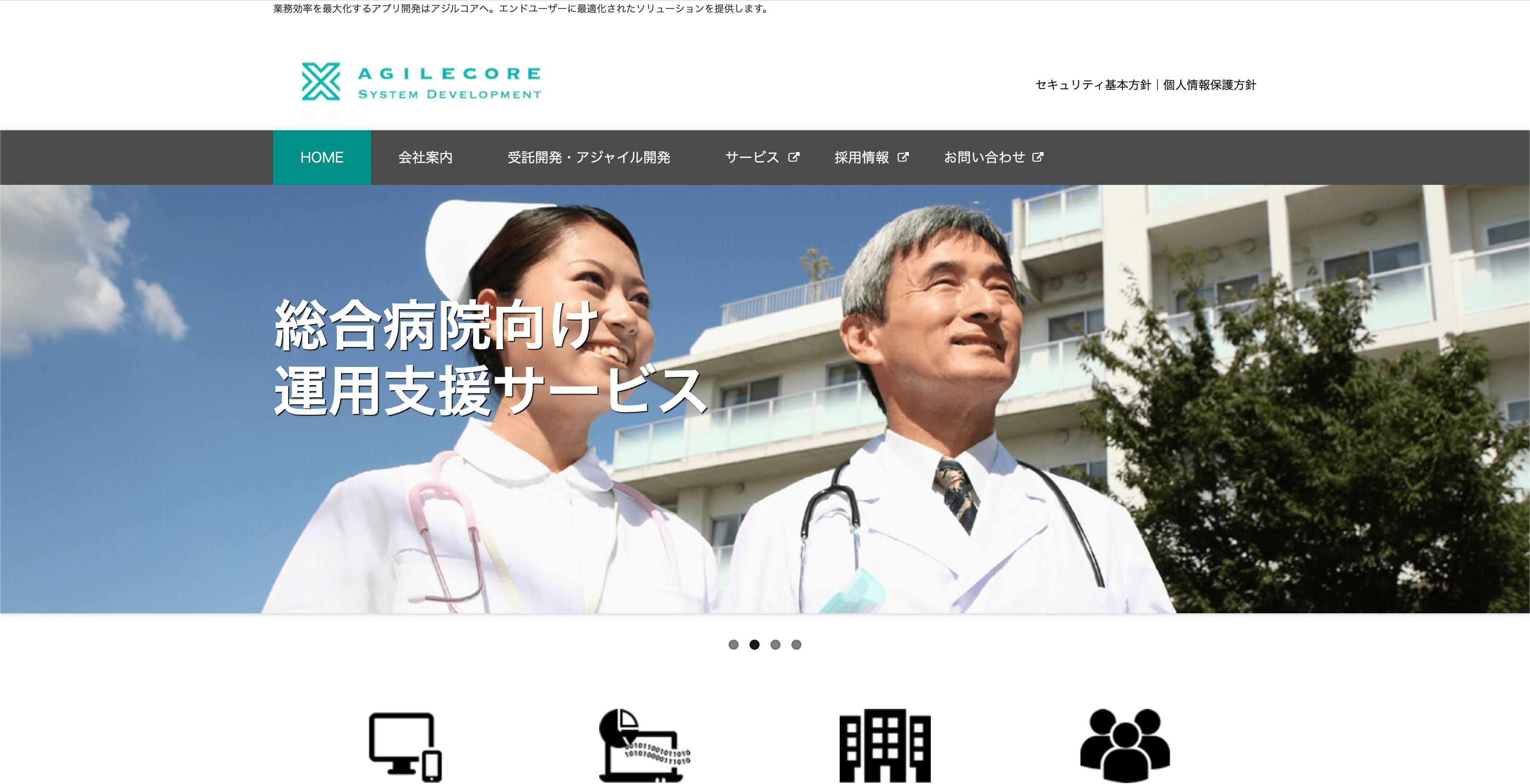 | 開発実績の一例 | 総合病院向け運用支援サービス、社員食堂管理システム、 タブレットを活用した勤怠管理システム |