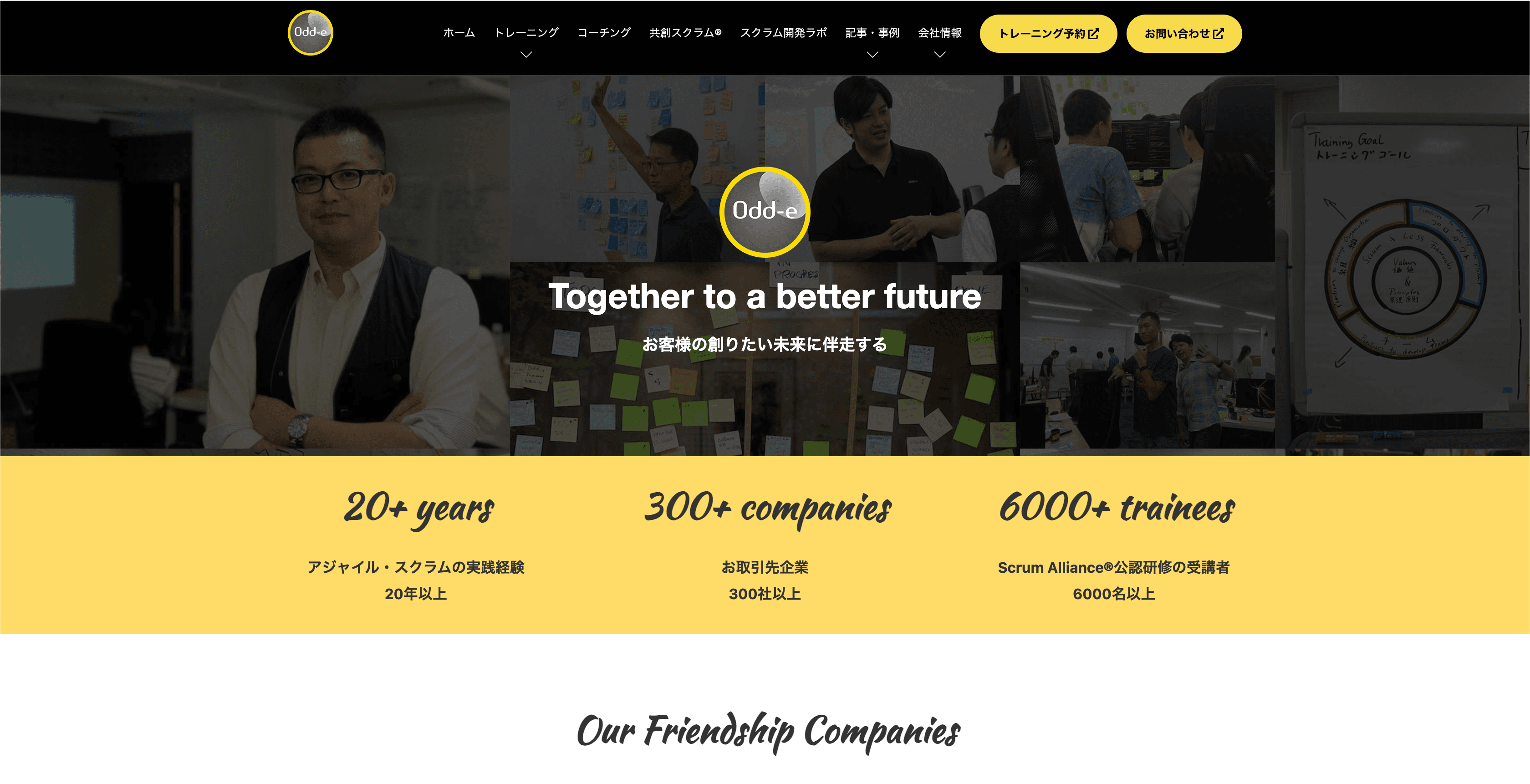 株式会社Odd-e Japanは、アジャイル開発およびスクラムを専門とする企業で、20年以上の実践経験を持ち、300社以上の企業にサービスを提供しています。