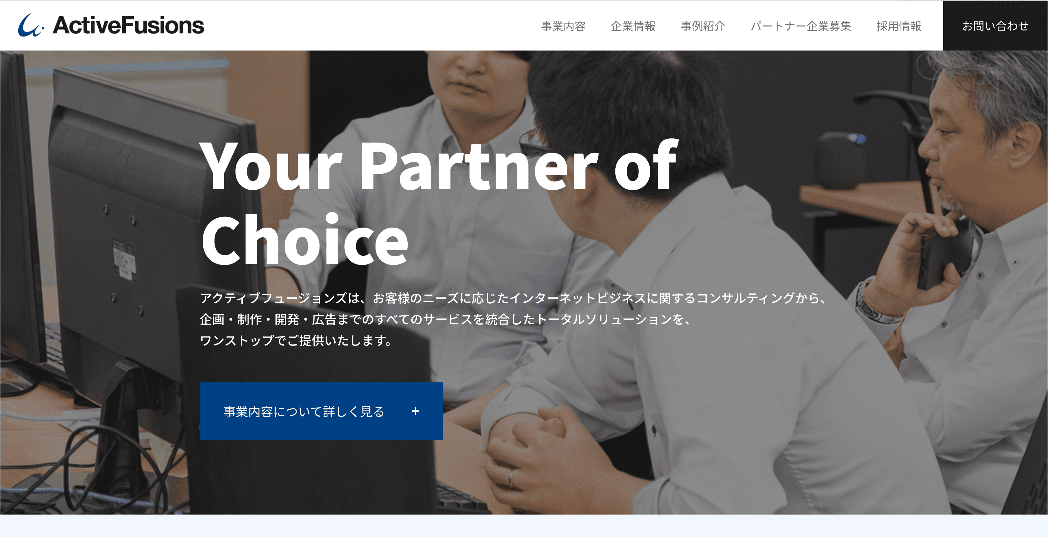 株式会社アクティブフュージョンズは、インターネットビジネスに関するトータルソリューションを提供する企業です。