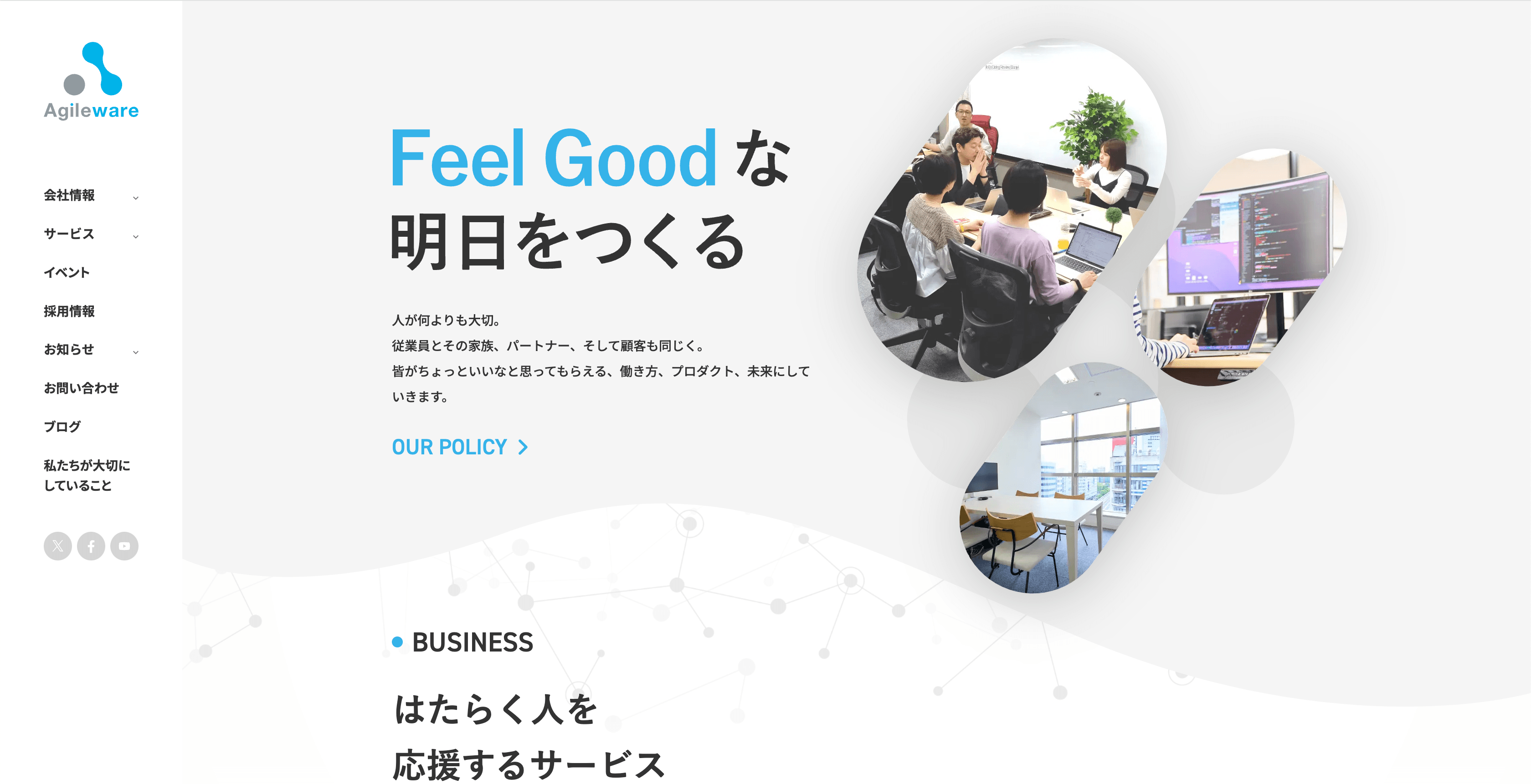 株式会社アジャイルウェアは、「Feel Goodな明日をつくる」を掲げ、アジャイル開発を中心にシステム開発を行う企業です。