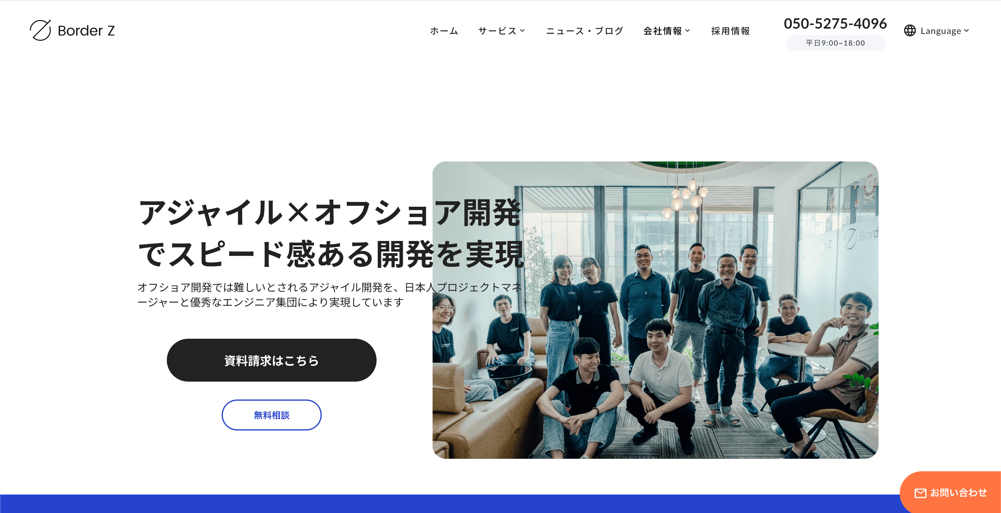 株式会社BorderZは、東京とベトナム(ハノイ)を拠点に、アジャイル開発とオフショア開発を組み合わせたサービスを提供する企業です。