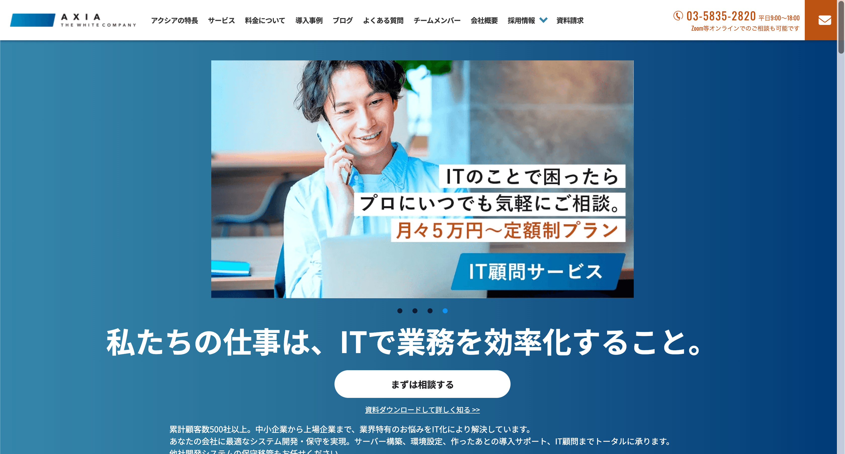 株式会社アクシアは、ITを活用した業務効率化を得意とするシステム開発会社で、業務システムの新規開発や既存システムの保守・改修、クラウドサーバーを活用したインフラ構築など多岐にわたるサービスを提供しています。
