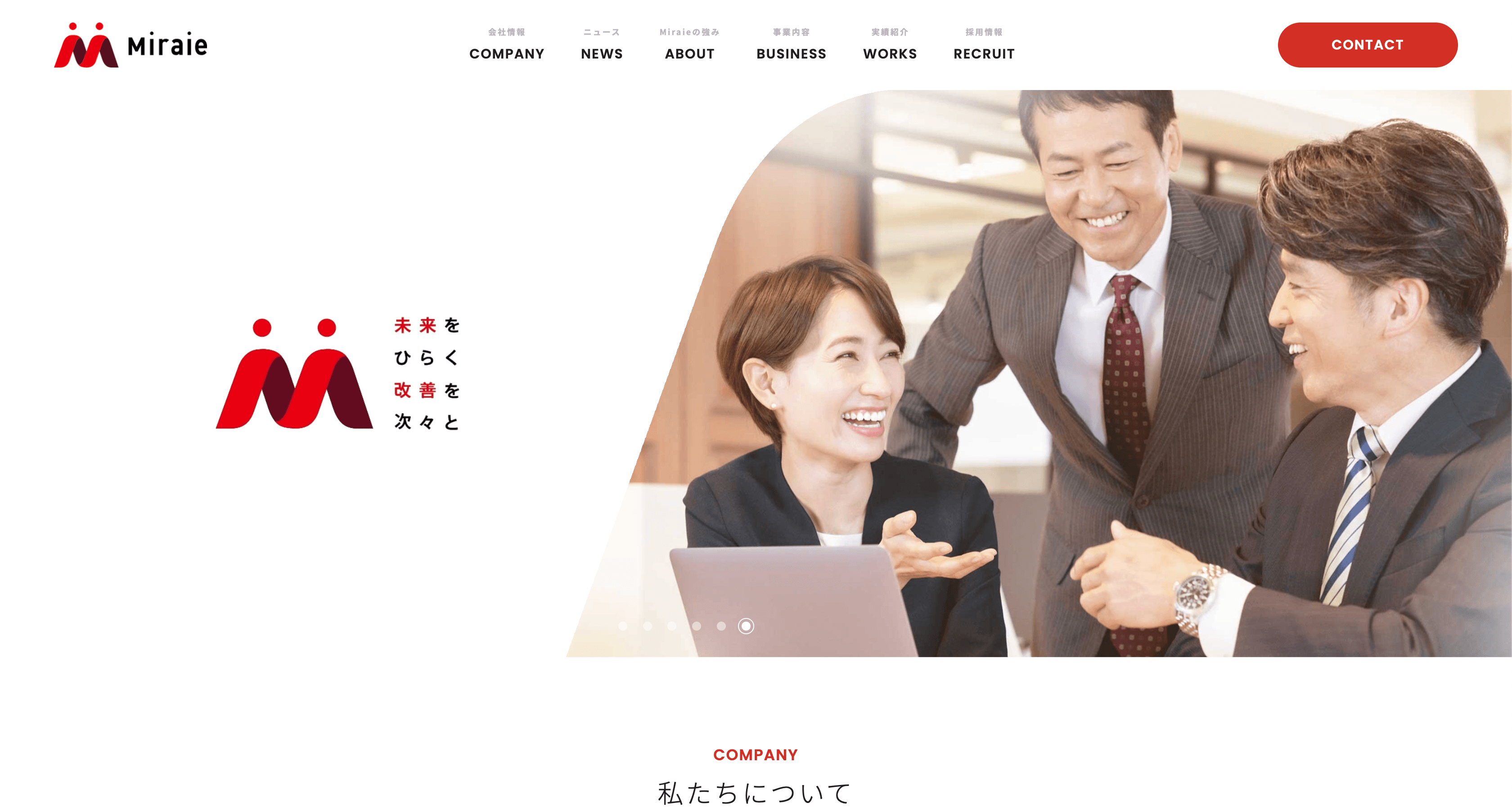 株式会社Miraieは、ITコンサルティング、SES(システムエンジニアリングサービス)、Webサービス、受託システム開発の4つの事業領域でサービスを提供する企業です。特にITコンサルティングやエンジニア派遣を通じて、企業の業務効率化や課題解決を支援しています。