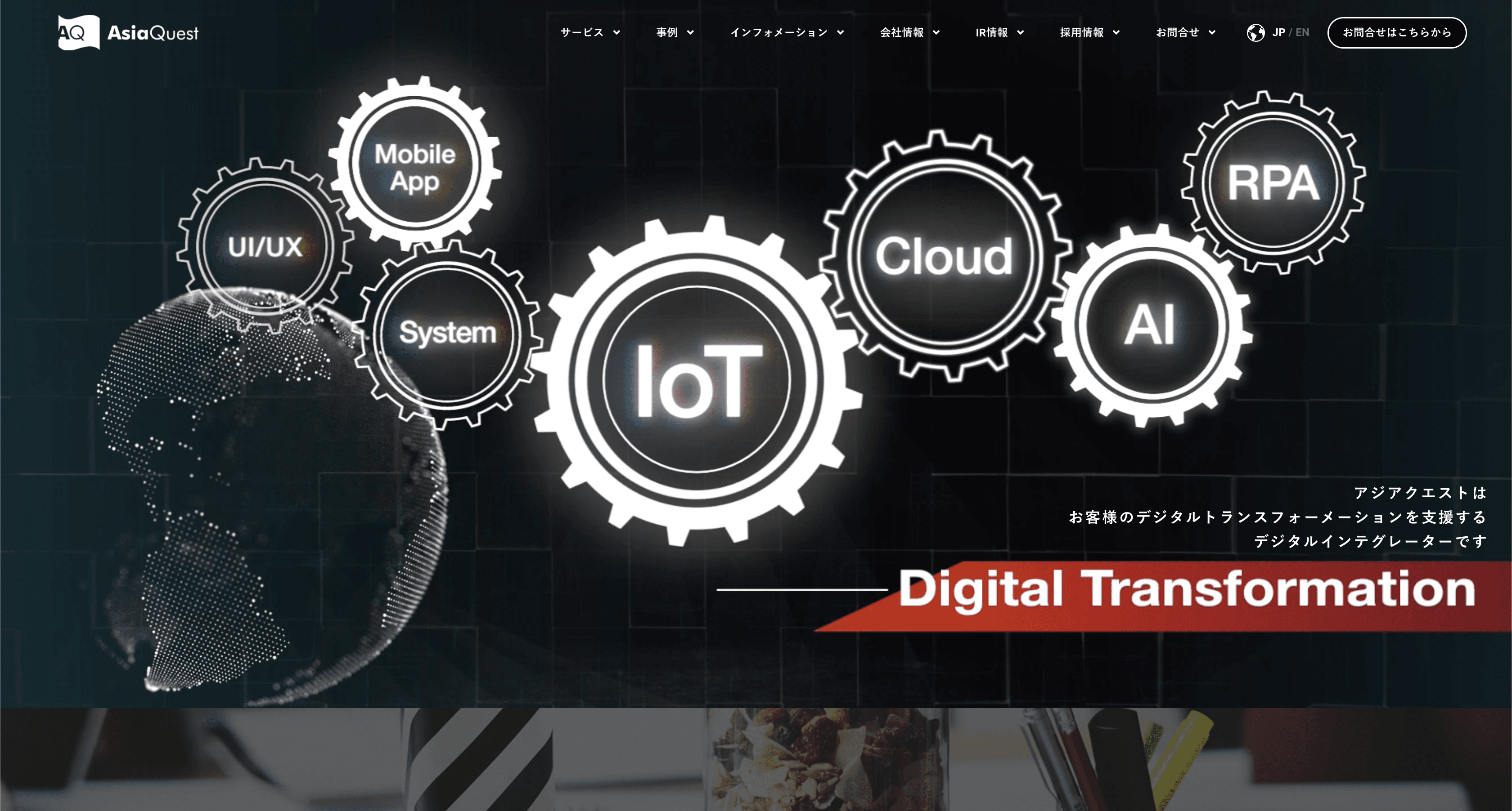 アジアクエスト株式会社は、デジタルインテグレーターとして、IoT、AI、クラウド、Web3D/XRといった最新技術を駆使し、企業のデジタルトランスフォーメーション(DX)を支援しています。