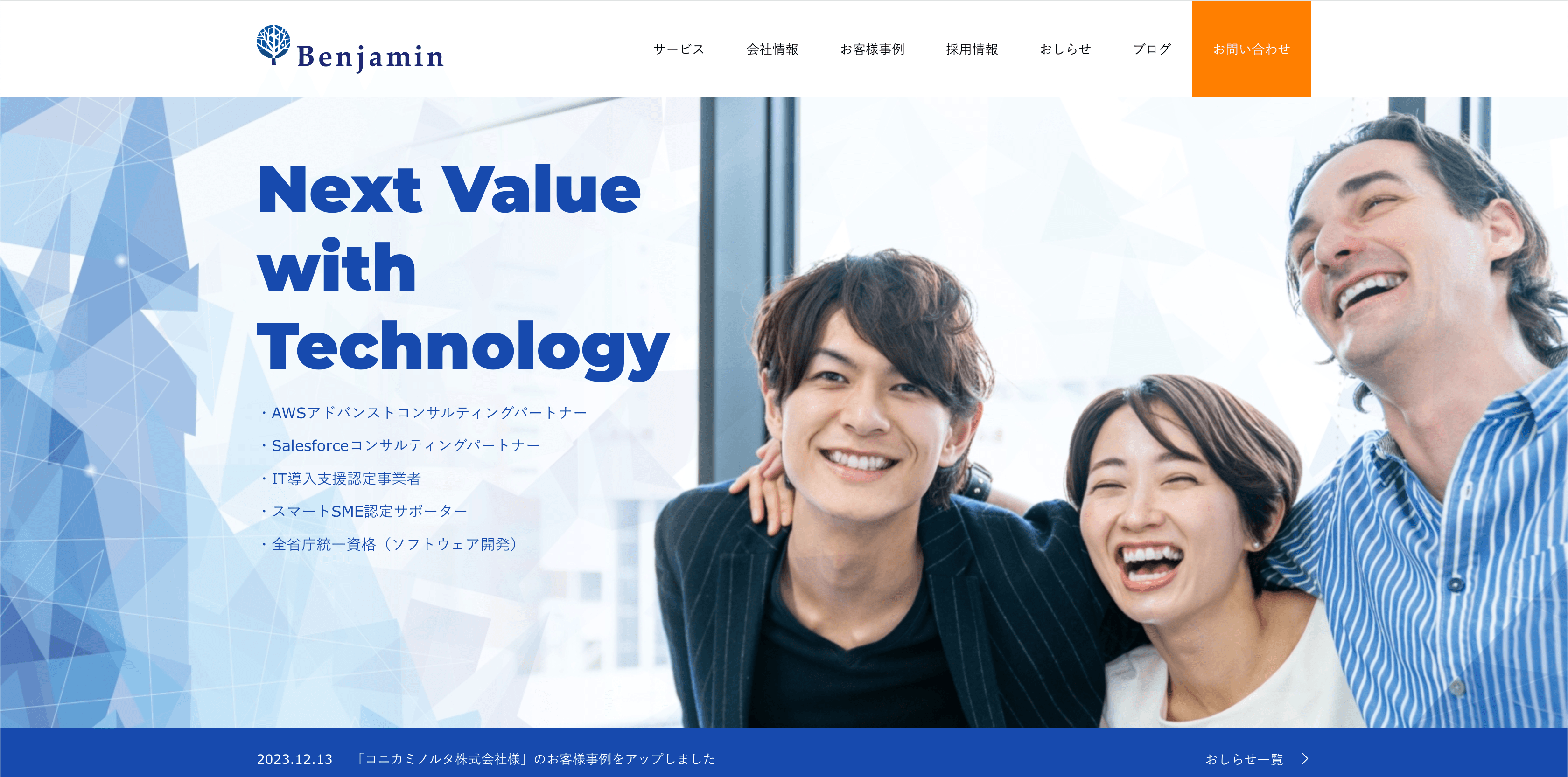 領域としてはWEB系システムの開発を得意としており、通信、物流、金融、小売といった業界の業務システムや、その他toC向けサービスにおいて多くの実績があります。